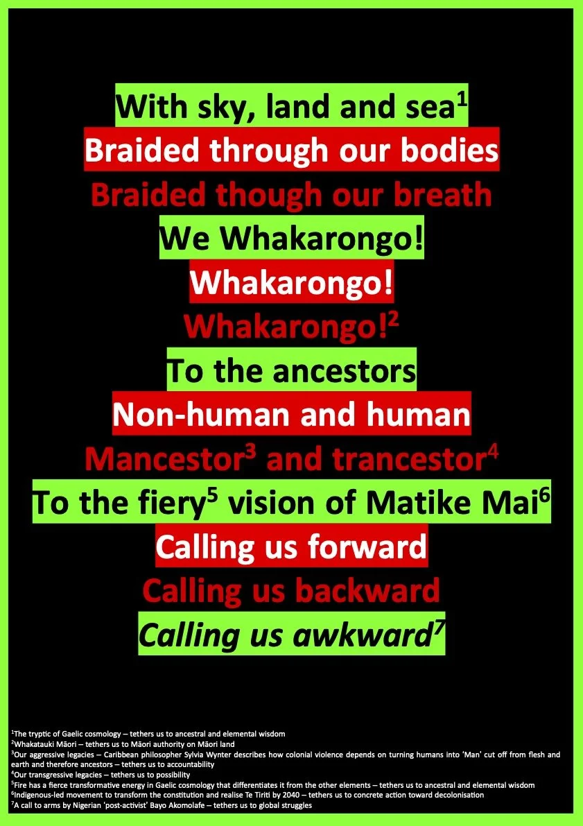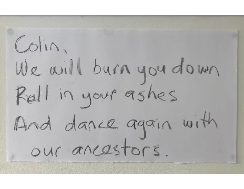 ‘DEAR COLIN ’ POSTER created through fire ritual with Te Rōpū Pākehā